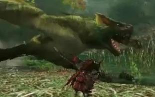 |尻尾たたきつけ|一瞬うなり、小ジャンプ後振り向きからハンターの方に向かって尻尾を伸ばし叩きつけてくる。